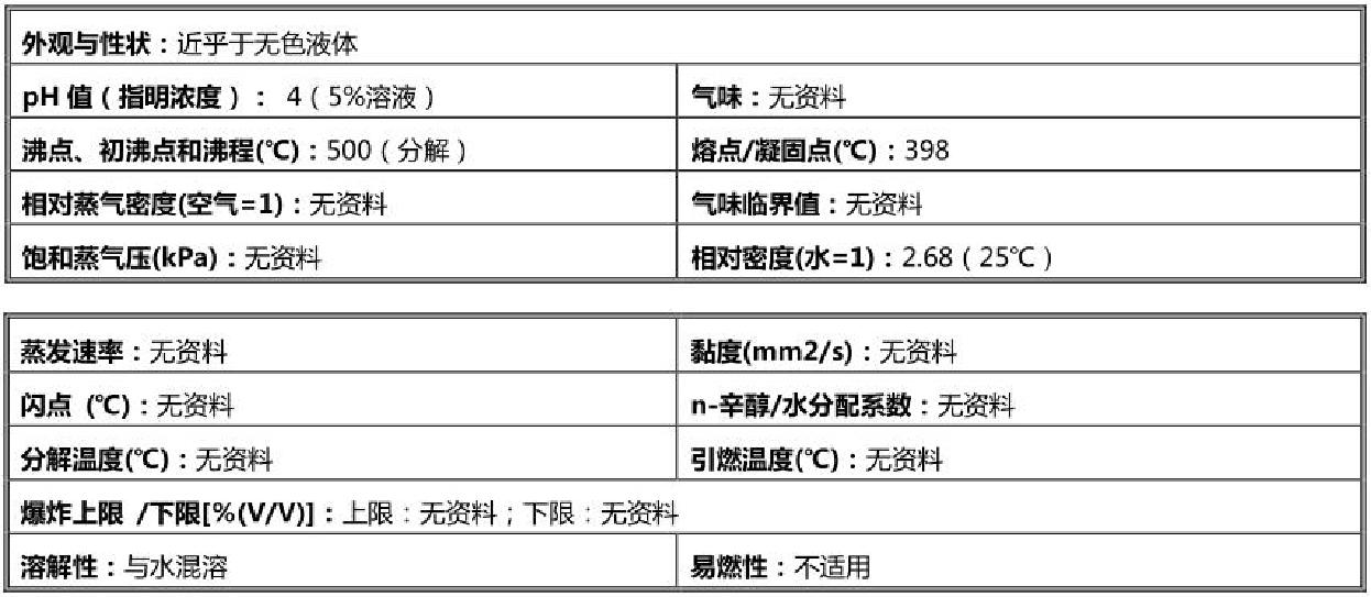 液體。跟可燃物質接觸可能會引起火災。吞食后有毒。會引起皮膚燒傷,有嚴重損害眼睛的危險。跟皮膚接觸可能會引起敏化作用。有嚴重損害眼睛的危險。吸入有劇毒。有引起過敏、哮喘病癥狀或呼吸困難的風險。對呼吸道有刺激作用。長期暴露有嚴重損傷健康的危險。對水生物有劇毒, 使用適當的容器, 以預防污染環境。對水生環境可能會引起長期有害作用。 使用適當的容器, 以預防污染環境。